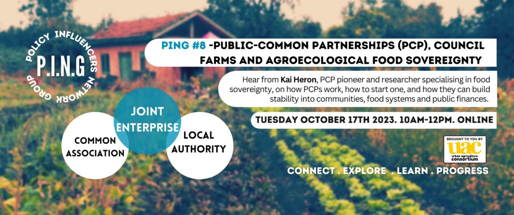 PING #8 – Tues 17th October 2023. Public Common Partnerships, Council Farms and Agroecological Food Sovereignty. With Dr Kai Heron from Abundance / Lancaster University and Gary Mitchell from Social Farms and Gardens / Future Farms project Wales.